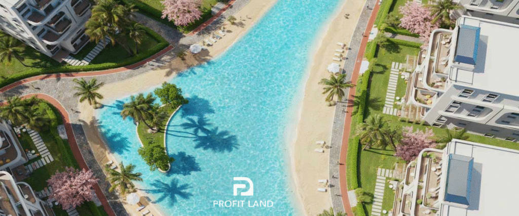 يعتمد المشروع على فكرة البحيرات الصناعية والمساحات المفتوحة.